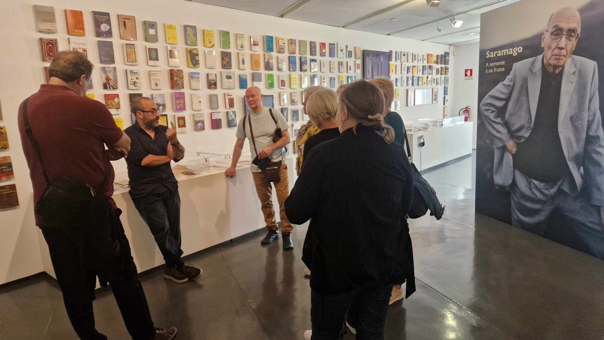 Letria rääkis José Saramago loomingust ja elust ning tutvustas asutuse igapäevatööd Saramago kirjanduspärandi säilitamisel. Osalejatel avanes võimalus lisaks näituse ruumidele külastada uurijatele mõeldud ruume ja konverentsi- või seminariruume, ühisürituste ja suuremate sündmuste jaoks kujundatud pööningusaali, tagatubasid ning hoolikalt kureeritud muuseumipoodi. Töövarjutuse jooksul selgitas Saramago muuseumi direktor meile asutuse peamiseid tegevusvaldkondi, rahastuse- ja turunduse probleeme küllaltki väikesel kultuuriareenil, digiteerimise ja konserveerimisega seotud edasiminekuid ja küsimusi ning põhilisi väärtusi ja seisukohti, millest asutus lähtub. Tagasihoidlik rahastus riigilt ja omavalitsuselt on sarnaselt eesti kirjanikemuuseumidele tinginud olukorra, kus peamiseks sissetulekuallikaks on erinevad projektitulud, erasektori toetused või annetused. See annab omakorda põhjust tegeleda paralleelselt paljude erinevate töödega ning leida pidevalt uusi viise, kuidas kaasata külastajaid. Lisaks ekskursiooniprogrammile töötab Saramago sihtasutus tihedalt Lissaboni haridusasutustega ning võõrustab suurt hulka teadlasi ja uurijaid. Teadustöö ja publikuprogammide läbipõimitus iseloomustab Saramago elutöö näitust, mis on omapäraselt üles ehitatud teosepõhiselt. Näituse tekstid olid peamiselt portugalikeelsed; see on taotluslik ning Saramago tahe – et väike maa, aga suur kirjandus ja keel.