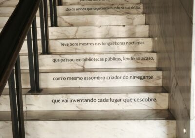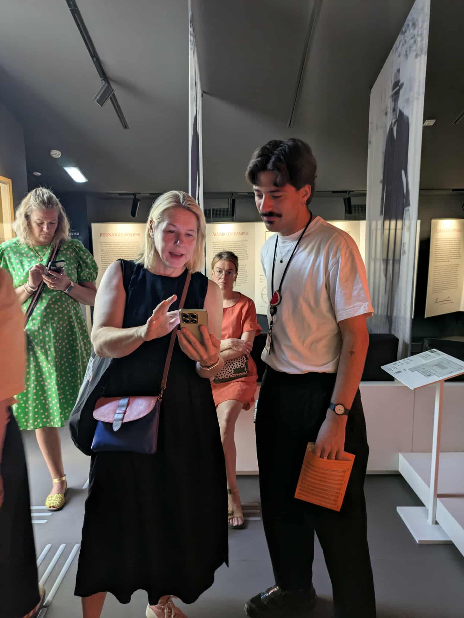 Meid võttis vastu Ricardo Nunes, kes rääkis muuseumi igapäevatööst, haridusprogrammidest, eraraamatukogust ning Pessoa muuseumi püsinäituse ülesehitusest ja kontseptsioonist. Suurt huvi ja uusi mõtteid saime ligipääsetavuse osas. Pessoa muuseum on sel teemal lausa eesrindlik. Neil ei ole arvestatud mitte ainult pimedate või liikumispuudega inimestega. Eraldi hoiatuskaardid on ka eriti tundlikele inimestele – kaardi pealt näevad nad, millises muuseumi osas võib olla häirivaid helisid või liiga tugevat valgust vmt. Samuti on iga laupäev pühendatud ühele erivajadusele – eraldi giidituurid kuulmisvaegusega inimestele, nägemispuudega inimestele, liikumispuudega inimestele ning eriti tundlikele inimestele.